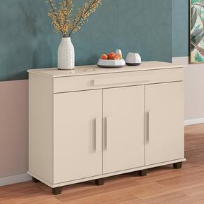 Ele conta com 1 gaveta com 3 repartições, 3 portas e 5 prateleiras, garantindo espaço suficiente para organizar seus utensílios
