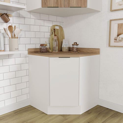 Balcão Canto Oblíquo Com Tampo Com Rodapé Puxador 150mm Ipanema é um móvel com design moderno e elegante, ideal para compor a decoração da sua cozinha. A porta, tampo e caixaria são fabricadas em MDP e possuem acabamento em BP, materiais de alta qualidade e resistência, proporcionando durabilidade e praticidade no uso diário. O tampo com padrão Acácia e a porta em Branco conferem sofisticação ao móvel, enquanto o rodapé Branco e o puxador de 150mm adicionam um toque de elegância ao design. Já as dobradiças com amortecimento garantem um fechamento suave e silencioso das portas, ao mesmo tempo que a prateleira central confere versatilidade e praticidade no armazenamento de objetos diversos. A fita de borda em PVC e o rodapé plástico trazem maior proteção contra umidade e prolongam a vida útil do móvel, além de ser fácil de limpar. Uma opção prática e funcional para quem busca organização e estilo em sua casa. Suporta Granito: Sim Acabamento da Prateleira: BP Melamínico Escala de Brilho da Prateleira: Fosco Acabamento da Porta: BP Melamínico Escala de Brilho da Porta: Fosco Material do Puxador da Porta: Alumínio Acabamento: BP Melamínico Acabamento dos Pés: Liso Acompanha Tampo: Sim Altura dos Pés: 16 cm Ambiente Principal: Cozinha Balcão Acompanha Pia: Não Complexidade da Montagem: Média: pode ser montado por mais de uma pessoa e/ou necessite de maior conhecimento para montagem Cor: Branco Cor do Pés: Cinza Cor do Produto: Branco Cor Interna: Branco Escala de Brilho: Fosco Informações Complementares: Altura dos pés 13 cm fechado e 16 cm aberto Itens Inclusos: 1 Balcão Canto Oblíquo, Tampo, Rodapés, Manual de Montagem, Kit Ferragens Linha ou Coleção: Ipanema Manual de Montagem e Instalação: https://cdn2.madeiramadeira.com.br/atributo/completa-moveis/1286233-ipn13a-manualdemontagem.pdf Material da Dobradiça/Corrediça da Porta: Metálica Material da Porta: MDP Material da Prateleira: MDP Material do Tampo: MDP Material dos Pés: Plástico Medida do Tampo (L x C x E): 80cmx80cmx9,5cm Montagem Flex: Não Necessita Montagem: Sim Origem do Produto: Nacional Pés Reguláveis: Sim Peso: 43,58 kg Peso Máximo por Prateleira: 23 kg Possui Pés: 07 Possui Portas: 01 Possui recorte para Cooktop: Não Recomendações de Uso, Manutenção e Limpeza: Use um pano levemente umedecido com água, seguido de pano seco. Não utilize produtos químicos ou abrasivos. Sapatas Niveladoras: Não Sistema de Montagem: Sistema de montagem via cavilhas, parafusos, minifix e pregos. Suporta Até (kg): 23 kg Tipo de Dobradiça/Corrediça da Porta: Soft close Tipo de Porta: Bater Tipo de Puxador da Porta: Externo