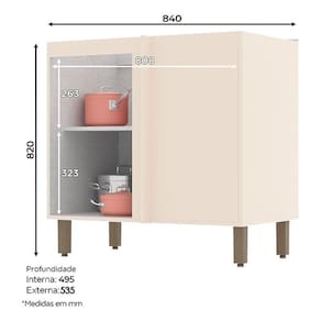 Balcão Canto Reto 1 Porta Connect Off White - Henn