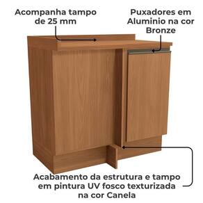 Estilo moderno e durabilidade que se encaixam perfeitamente no seu ambiente. O Balcão de canto reto G748 Maxxi, conta com 1 porta equa com dobradiça reta de 35mm com amortecedor, puxador em alumínio, tampo em MDP de 25 mm com sarrafo de reforço e acabamento texturizada UV (fosco ou semibrilho). Possui sistema de montagem podendo ser instalado suspenso ou com rodapé, adaptando-se ao seu projeto e à sua necessidade. Fabricado em MDP com espessura de 15mm e acabamento em pintura texturizada UV (fosco ou semibrilho). Este móvel chegará na sua casa separado em 02 volumes.