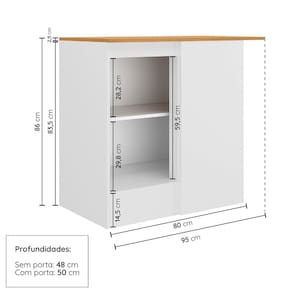 Informações Complementares: Balcão canto reto com tampo de 27mm de espessura, porta de bater almofadada/moldurada em MDF 4mm, dobradiças de 35mm, prateleira interna, puxador retrô em aluminio, pés reguláveis, rodapés removíveis com presilhas modelo click.