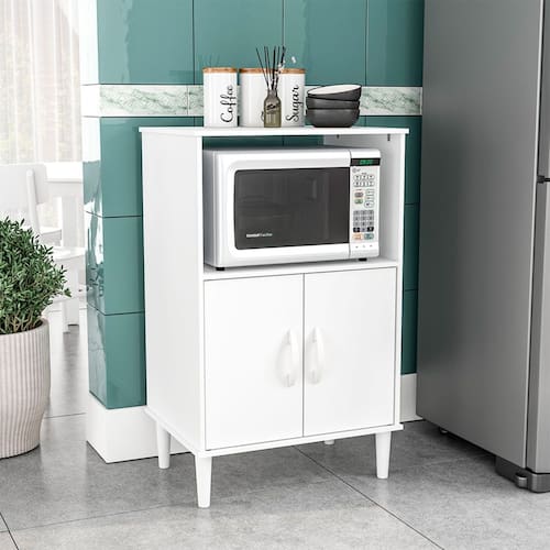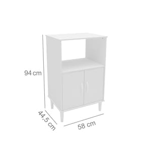 Características: Estrutura MDP Pintura UV Fosco 02 Portas com dobradiças metálicas Nicho para micro-ondas Puxadores de Plástico Peso suportado no Tampo: 20kg
