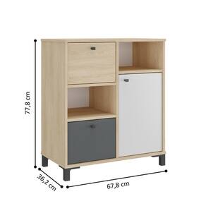 Ela possui um design escandinavo elegante. Possui uma porta e duas gavetas, com prateleira interna com regulagem de altura e gavetas que podem ser montadas em qualquer ordem.