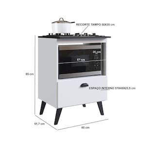 O balcão BL060 possui estrutura em MDP 15mm e acabamento FF acetinado possui 1 porta basculante com puxador concha plástico e dobradiças metálicas e 4 pés plásticos fixos com altura de 17cm. Costas 3mm. O balcão possui recorte no tampo com tamanho de 50x35cm. Produto suporta até 30kgs. Não necessita fixação na parede. Conteúdo da embalagem: móvel, ferragens e manual de montagem. A fixação das peças e/ou acessórios é feita por parafusos e cavilhas. Para uma limpeza mais efetiva, utilizar apenas pano macio umedecido e sabão neutro. Não utilizar produtos abrasivos. Garantia de 03 meses contra defeitos de fabricação. Medidas do produto (AxLxP): 85x60x51,7cm. Peso do produto: 14,2kgs.