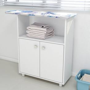 Balcão com tábua de passar é sinônimo de funcionalidade, pois conta com detalhes que ajudam muito no dia a dia. Ele possui 2 portas de dobradiças metálicas com puxadores de plástico, prateleira interna e nicho superior, ou seja, tem tudo que precisa para fazer diferença no cômodo! Ah, e ainda é fabricado em MDP com acabamento em pintura UV que agrega qualidade ao produto.