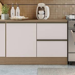 Balcão com Tampo, projetado para oferecer funcionalidade e elegância ao seu ambiente culinário. Fabricado em MDP de 15 mm com tampo de espessura 27 mm, pintura UV nas portas, garantindo durabilidade e resistência. Conta com uma porta equipada com dobradiças metálicas de 35 mm e função slow motion, proporcionando um fechamento suave e silencioso. Possui duas gavetas, sendo uma embutida com porta-talheres incluso. Todas são equipadas com corrediças telescópicas, permitindo abertura total e acesso facilitado aos utensílios. Inclui uma prateleira fixa interna, otimizando o espaço para organização de utensílios e mantimentos. Dispõe de pés em PVC com 14,5 cm de altura, reguláveis para um nivelamento perfeito ao piso. Os rodapés são fixados com presilhas modelo click com espessura de 15 mm, facilitando a remoção e a limpeza do puxadores modelo perfil em polímero com acabamento de alta cobertura agregam sofisticação ao móvel. Este balcão é uma excelente opção para quem busca aliar praticidade e estilo na cozinha, atendendo às necessidades de organização e estética do espaço. Este móvel chegará em sua casa separado em 02 volumes.