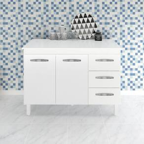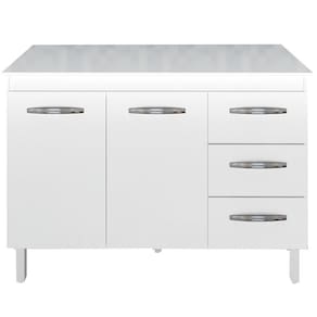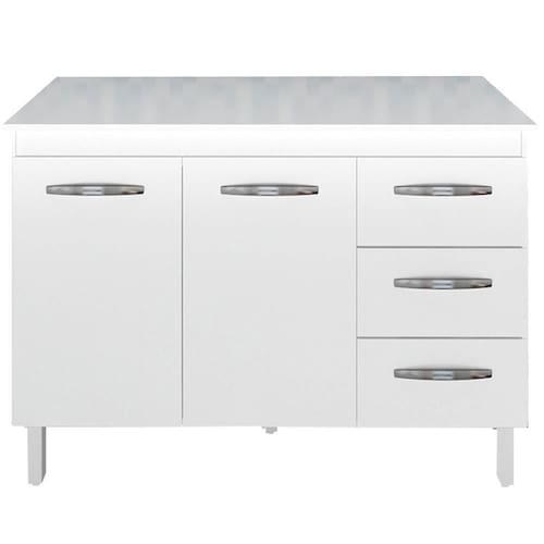 Balcão Bianca com Tampo, uma excelente opção para sua casa. Estrutura em MDP de 12/15mm, com acabamento em pintura UV. Composto por 02 portas com dobradiças metálicas, uma prateleira interna para maior aproveitamento do espaço, 03 gavetas com corrediças metálicas, ideal para armazenar seus utensílios de cozinha, puxadores em plástico cromado, acompanha tampo de 120 cm, pés fixos de 16,5cm que garantem a firmeza que o móvel precisa, possui perfeita combinação com os mais variados ambientes, seja sozinho ou com outros móveis que você também encontra em nosso site. Você pode compor sua cozinha da forma que desejar. Este móvel chegará em sua casa separado em 02 volumes.