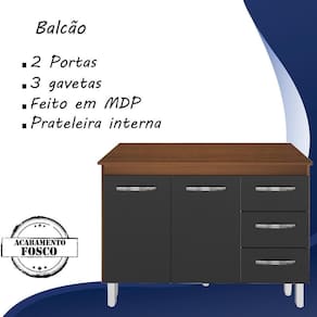 Produto: Balcão com Tampo | Tonalidade: Multicolorido | Acompanha Pia de Cozinha: sem Pia de Cozinha | Cor: Colorido Cor: Preto Savana