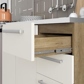 Desenvolvido para um público que tem necessidade de otimizar ao máximo o espaço de sua casa sem perder qualidade. Os móveis podem ser montados e desmontados de acordo com suas novas condições. Com manutenção simples, variedades de opções e extremamente funcional tem o corpo e portas em MDP de 15mm e o tampo em MDP de 25mm que garantem robustez ao móvel. Bordas em PVC para um acabamento perfeito e puxadores com haste em alumínio e ponteira em ABS, os pés são de madeira com regulagem de altura.