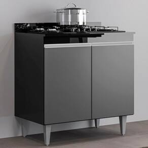 Balcao Com Tampo 2 Portas Ellen 80 Cm Preto Grafite Grafite