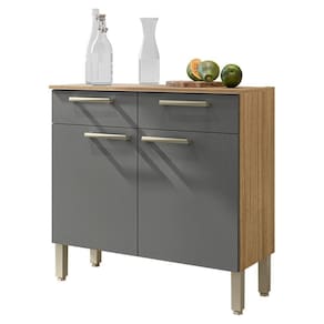 Balcao Com Tampo 2p 2g 91 Cm Nala Freijo Gris Ktp Freijo Gris