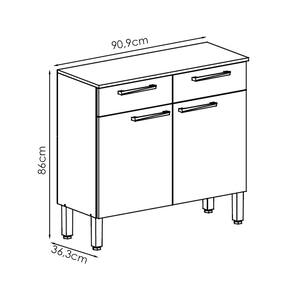 Balcão Com Tampo para quem busca praticidade na organização da cozinha. Produzido em MDP (12/15mm) com acabamento em pintura UV. Conta com 02 portas, 02 gavetas, dobradiças e corrediças metálicas. Os puxadores ergonômicos e pés reguláveis são em plástico resistente. Este produto será entregue em 01 volume.