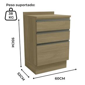 Projetado para oferecer estilo e praticidade. O Balcão com Tampo 60 cm G743 é produzido 100% em MDP de 15 mm, com acabamento em pintura texturizada UV (fosco ou semibrilho) e tampo fabricado 100% em MDP de 25 mm com acabamento em pintura BP. Conta com 3 gavetas (sendo 1 com divisor de talheres e 1 gavetão) equipadas com corrediças telescópicas de 35 mm, puxador em alumínio e duplo sistema de montagem, podendo ser instalado suspenso ou com rodapé. Este móvel chegará na sua casa separado em 03 volumes.