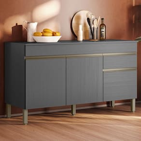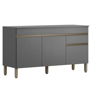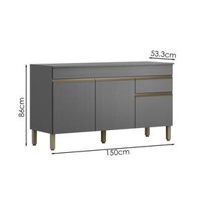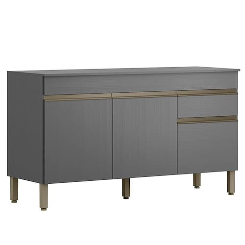 Balcão Com Tampo para quem busca praticidade na organização da cozinha. Produzido em MDP (15mm) com acabamento em pintura UV texturizada. Conta com 03 portas, 01 gaveta, dobradiças e corrediças metálicas e 01 prateleira interna. Os pés reguláveis são em plástico resistente e os puxadores em perfil alumínio com pintura epóxi. Este produto será entregue em 03 volumes.