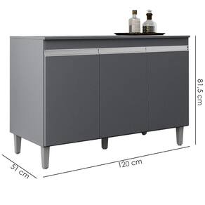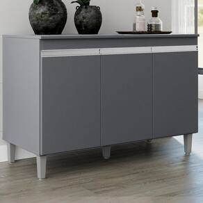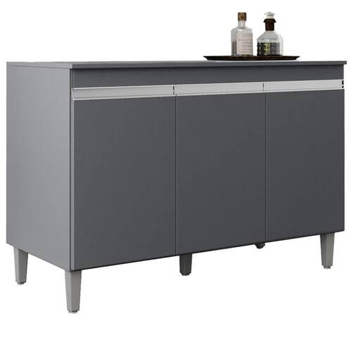 Balcão Com Tampo Manu, funcional e compacto para o dia a dia. Estrutura em MDP (12/15 mm - fundo 3 mm) com pintura UV. Possui portas com dobradiças metálicas, 2 prateleiras internas, puxadores em alumínio e pés plásticos com regulagem. Entregue em 2 volumes.