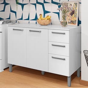 O Balcão Com Tampo é a escolha ideal para quem busca praticidade na organização da cozinha. Produzido em MDP de 12mm e 15mm, com acabamento em pintura UV que garante maior proteção e beleza ao móvel. Conta com 03 portas com dobradiças metálicas, 02 gavetas com corrediças telescópicas, além de 01 prateleira interna. Os puxadores ergonômicos e os pés reguláveis, ambos em plástico resistente, proporcionam conforto no uso e estabilidade ao móvel. Este móvel chegará em sua casa separado em 02 volumes.
