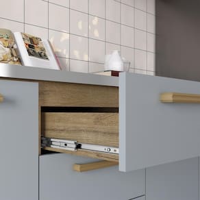 Dobradiças Slow Motion, e corrediças telescópicas.