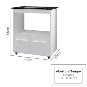 Balcão Com Tampo Cooktop 5 Bocas 75cm Elisa, é ideal para quem busca qualidade e sofisticação para compor sua cozinha da forma que desejar. Estrutura em MDP de 12 e 15 mm e tampo em MDF, acabamento em pintura UV. Composto por 02 portas articuladas com dobradiças metálicas, 01 nicho para microondas ou forno elétrico, puxadores em plástico cromado, tampo em MDF com espaço para fogão cooktop de 5 bocas (64x35,5 cm tampo já recortado), espaço para utensílios, acompanham pés fixos que garantem a firmeza que o móvel precisa. Produzido com controle de qualidade e com excelente acabamento. Este móvel chegará em sua casa separado em 01 volume.