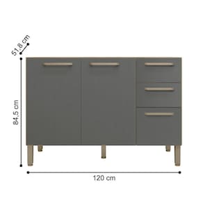 O Balcão é um exemplo de elegância e sofisticação na decoração de cozinhas. Com matéria prima que respeita o meio ambiente. Possui 3 portas com dobradiças 100 % metálicas que garantem mais e qualidade ao produto, dispõe também 2 gavetas com corrediças telescopicas que suavizam a abertura e fechamento das gavetas. Permite a utlização de tampo inox.