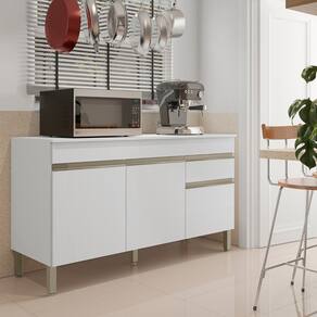 O Balcão possui 3 portas e 1 gaveta e 1 tampo incluso, destaca-se por sua praticidade e eficiência de uso, podendo ser utilizada como complemento de cozinha.