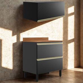 Balcão e Armário Proença, compacto e ideal para otimizar o espaço da cozinha com praticidade. Produzidos 100% em MDF (15 mm) com acabamento em pintura UV. Conta com portas basculantes com pistão a gás e dobradiças metálicas de 35 mm, gavetão inferior com corrediças telescópicas e puxadores em alumínio. Além de pés com regulagem de altura e tampo (20 mm) já inclusos no balcão. Este produto será entregue em 02 volumes.
