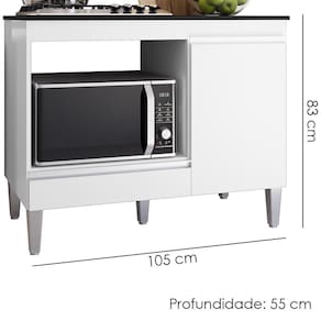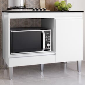 Balcão Para Cooktop e Forno Carla, funcional e compacto para o seu dia a dia. Estrutura em MDP (12/15 mm - fundo 3 mm) com acabamento em pintura UV. Composto por porta e gaveta com dobradiças e corrediças metálicas, puxadores em alumínio, tampo com espaço para fogão cooktop de 4 ou 5 bocas (tampo marcado para recorte e deverá ser recortado caso queira usar cooktop) e espaço interno para botijão de gás e/ou utensílios. Pés em plástico com regulagem. FOGÃO/ELETROS NÃO INCLUSOS. Produto será entregue em 01 volume.
