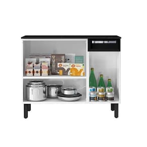 Fabricado em aço de alta qualidade; Pintura Eletrostática a pó de alto brilho e resistência.; Corrediças telescópicas; Dobradiças metálicas 26mm; Pés de plástico;
