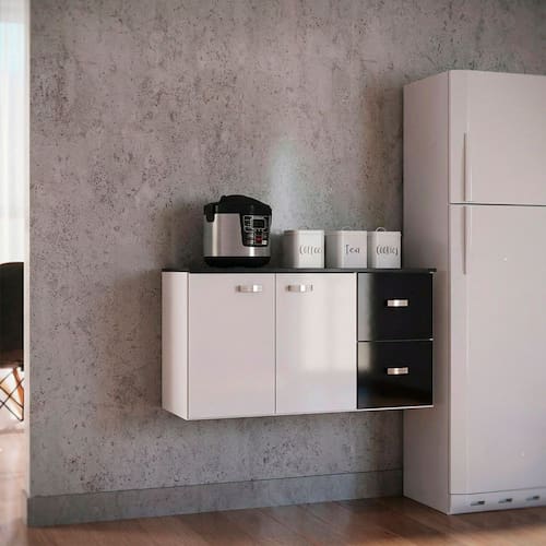 Balcao Suspenso para Cozinha Julia com Tampo 2 Portas e 2 Gavetas 90cm Poquema
