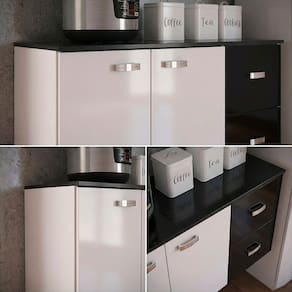 Compacto por fora e eficiente por dentro, o movel conta com 2 portas e 2 gavetas, oferecendo espaco pratico para armazenar utensilios, mantimentos, loucas e itens essenciais do dia a dia. As dobradicas e corredicas metalicas garantem maior resistencia, abertura suave e durabilidade no uso continuo.