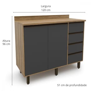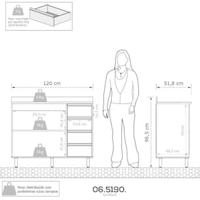 Dimensões: Altura -com pés-: 96 cm | Largura: 120 cm | Profundidade: 51 cm