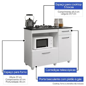 Otimize o espaço da sua cozinha utilizando o Balcão para Cooktop Violeta, pois ele conta com muito espaço para organizar os seus utensílios mais utilizados durante o dia. Dê um toque especial em sua cozinha com esse versátil e charmoso Balcão. Medida do Recorte para Cooktop 65,2cmx37,7cm.
