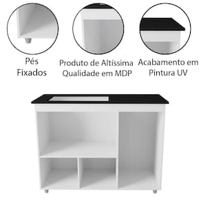 Balcão Cooktop 3 Portas MDP Dobradiças Metálicas Pés Anita - Branco