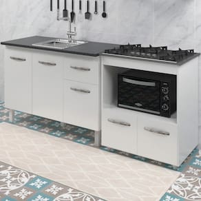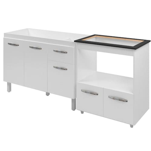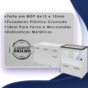 Balcão para Pia Anitta e Cooktop 5 Bocas Elisa, é ideal para quem busca qualidade e sofisticação para compor sua cozinha da forma que desejar. Estrutura em MDP de 12 e 15 mm, acabamento em pintura UV. Kit com 01 balcão para pia de 120cm de 3 portas e 2 gavetas e 01 balcão para Cooktop (64x35,5 cm tampo já recortado), com 02 portas articuladas, dobradiças metálicas e 01 nicho para microondas ou forno elétrico, puxadores em plástico cromado, espaço para utensílios, acompanham pés fixos que garantem a firmeza que o móvel precisa. Produzido com controle de qualidade e com excelente acabamento. Este móvel chegará em sua casa separado em 02 volumes.