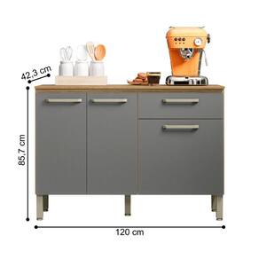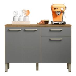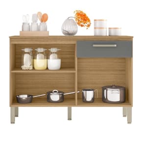 Com madeira reconstituída, que respeita o meio ambiente. Composto de três portas e uma gaveta, onde são utilizadas dobradiças e corrediças 100% metálicas, tampo que traz a praticidade de utilização de decorações, utensílios para cozinha e até mesmo eletrodomésticos. Os puxadores são ergonômicos em plástico resistente (poliestireno). Possui pés reguláveis em plástico resistente que garantem a estabilidade do produto. Acabamento com pintura UV.