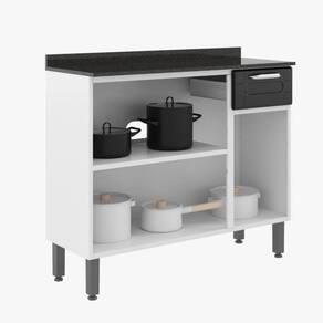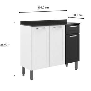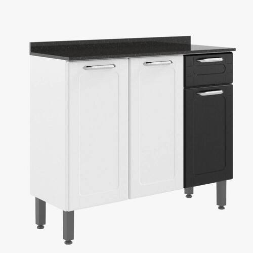 Balcão Cozinha Dona Maria 3 Portas 1 Gaveta Branco com Preto com Tampo e pés Bertolini