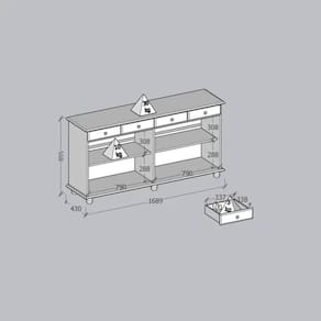 ESPECIFICAÇÕES TÉCNICAS:<Br> Matéria prima madeira maciça de pinus de reflorestamento;<Br> Pintura Acetinada Verniz PU e UV;<Br> Corrediças telescópicas;<Br> Peso máximo suportado pela Gaveta 05kg distribuídos;<Br> Puxadores metálicos em ouro envelhecido;<Br> Pés tornecados em madeira maciça;<Br> Prateleiras em madeira maciça (Peso suportado 10kg distribuídos)<Br> Isolamento de peças com manta de polietileno expandido (Isomanta);<Br> Possui manual de montagem;<Br> Sistema de montagem simples e rápida.<Br><Br>