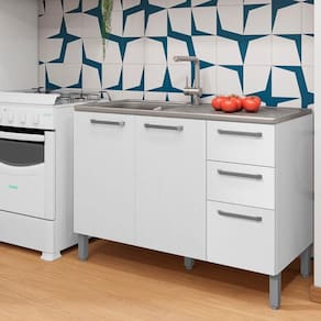 O Balcão é um exemplo de elegância e sofisticação na decoração de cozinhas. Com matéria prima que respeita o meio ambiente. Possui 3 portas com dobradiças 100 % metálicas que garantem mais e qualidade ao produto, dispõe também 2 gavetas com corrediças telescopicas que suavizam a abertura e fechamento das gavetas. Permite a utlização de tampo inox.