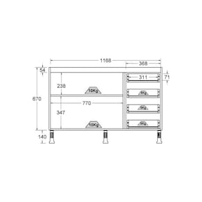 Produzido em MDP de 15 mm, revestido de pintura Ultra Violeta (UV).