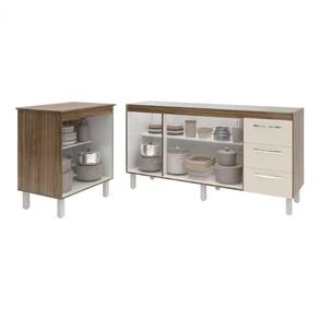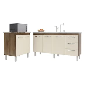 Balcão Cozinha Gabinete Para Pia 138 Cm Carine E Balcão Jane Para Microondas Ou Forno Elétrico Savana Off White
