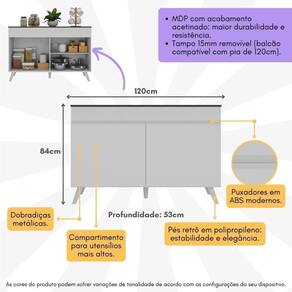 Altura: 84cm | Largura: 120cm | Profundidade: 53cm (balcão com tampo)