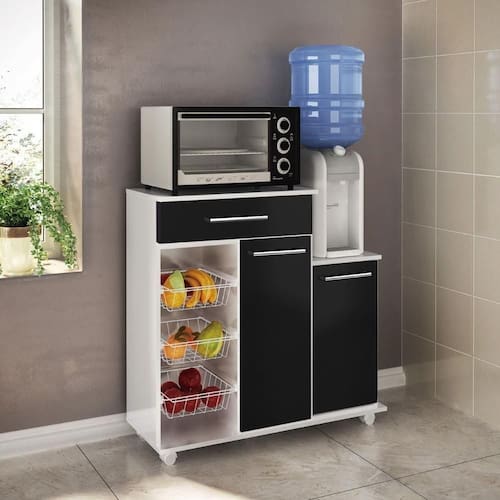 Sua cozinha vai ficar muito mais bonita e funcional com o Balcão Fruteira Multi Ditália. Os tampos suportam até 15kg cada. O balcão possui duas portas e uma prateleira interna que suporta até 15 kg, possui uma gaveta com corrediça e três cestos/fruteiras metálicos em aramado, o produto possui também rodizíos que facilitam o deslocamento . Produto produzido em MDP 15mm e revestido em pintura UV atóxica, resitente moderno e funcional.
