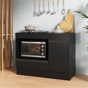 Possui tampo de 15mm para colocação de Cooktop de 4 ou 5 bocas e espaço exclusivo para acomodar o seu forno, otimizando o espaço da cozinha. O recorte do tampo deve ser feito no momento da montagem, conforme o tamanho do seu Cooktop (tamanho máximo do nicho: 62 x 36cm).