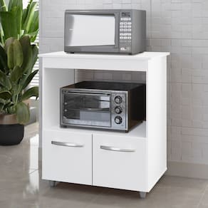- Praticidade: O espaço exclusivo para o forno micro-ondas e as 02 portas para utensílios garantem um ambiente mais organizado e livre de desordem.
