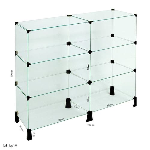 >BALCÃO DE VIDRO TEMPERADO MODULADO 4 MM 1,00X1,00X0.30cm EXPOSITOR MULTIUSO COM 6 DIVISÓRIAS