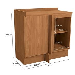 Preencha sua cozinha com a beleza e qualidade do Balcão de Canto R627 da Cozinha Ciela da Kappesberg. Com corpo em MDP de 15mm e portas em MDF de 18mm, ele garante robustez e qualidade. São 88cm de altura, 98cm de largura e 59cm de profundidade, além de sete camadas de pintura, com acabamento touch na cor canela. Com rodapés, ele acompanha as ferragens para ser montado suspenso. E se preferir, pode montá-lo com pézinhos, adquiridos separadamente. Com tampo em 25mm na cor canela, e combinando com o aéreo do mesmo tamanho, ele é ideal para composições em "L", podendo ser montado para ambos os lados. Com uma porta e duas prateleiras para organizar louças e mantimentos, as portas possuem dobradiças com amortecimento e o puxador cava embutido completa a beleza e o design do produto. Suporta Granito: Sim Acabamento da Prateleira: Pintura Escala de Brilho da Prateleira: Fosco Acabamento da Porta: Pintura Escala de Brilho da Porta: Fosco Acabamento: Pintura Acabamento dos Pés: Pintura Acompanha Tampo: Sim Altura dos Pés: 16 cm Ambiente Principal: Cozinha Balcão Acompanha Pia: Não Cesto para Frutas: Não Complexidade da Montagem: Média: pode ser montado por mais de uma pessoa e/ou necessite de maior conhecimento para montagem Cor: Canela Cor do Produto: Canela Cor Interna: Canela Escala de Brilho: Fosco Itens Inclusos: 1 Balcão, 1 Tampo, manual de montagem e ferragens Linha ou Coleção: COZINHA 2024 Manual de Montagem e Instalação: https://product-hub-prd.madeiramadeira.com.br/932164/documents/c42a3687-947c-4714-abc9-ba0f2c76282c224119254451724174407797.pdf Material da Dobradiça/Corrediça da Porta: Metálica Material da Porta: MDF Material da Prateleira: MDP Material do Tampo: MDP Material dos Pés: MDP Medida do Tampo (L x C x E): 98x59x2,5 modular: Sim Necessita Montagem: Sim Origem do Produto: Nacional Pés Reguláveis: Não Peso: 42,0152 kg Peso Máximo por Prateleira: 7 kg Possui Pés: Rodapé Possui Portas: Sim Possui recorte para Cooktop: Não Recomendações de Uso, Manutenção e Limpeza: Use um pano limpo e ligeiramente umedecido em água ou álcool (recomendamos álcool etílico hidratado). Logo após, seque a superfície com um pano seco e macio. Em grandes superfícies limpe pequenas áreas de cada vez, trabalhando de baixo para cima. Sapatas Niveladoras: Não Sistema de Montagem: Parafuso Philips Suporta Até (kg): 20 kg Tipo de Dobradiça/Corrediça da Porta: 35 mm Tipo de Porta: Bater Tipo de Puxador da Porta: Embutido