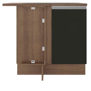 - Itens inclusos: Um (1) balcão de 84cm de altura x 94cm de largura x 55cm de profundidade com uma (1) porta, uma (1) prateleira interna e dois (2) tampos em pintura amadeirado Rustic