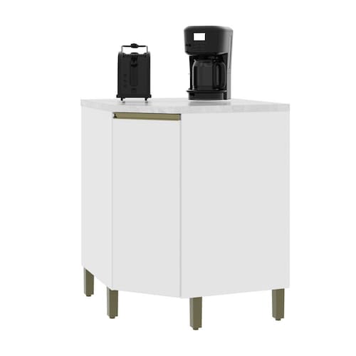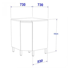 Balcão de Canto Oblíquo1 Porta com Tampo Star Indekes, reúne características decorativas e práticas em seu design! O espaço interno, que vem com prateleiras e divisória, é ótimo para organização dos utensílios e mantimentos.