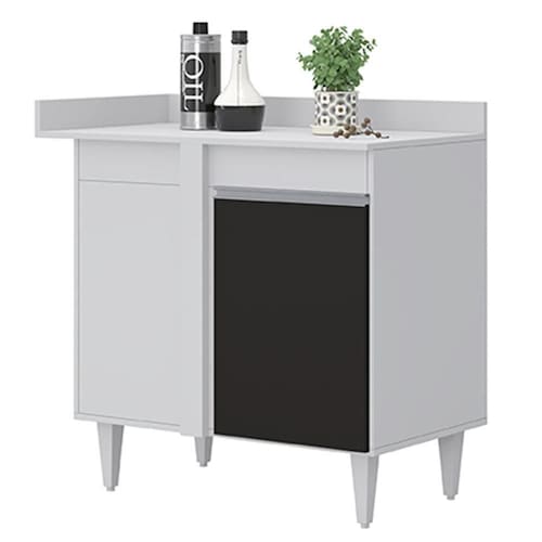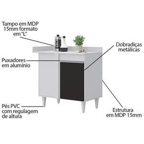 O Balcão de Canto Reto com Tampo Denver Branco/Preto, da Lumil é uma ótima escolha para quem busca praticidade e beleza.