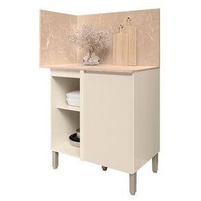 Balcão de Canto Reto Com Tampo e Painel 94cm Minsk Vanilla Z06 - Mpozenato