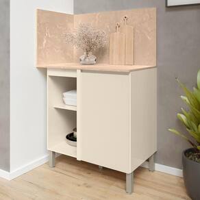 Fabricado com MDP de 12 e 15mm e acabamento em pintura UV, garante resistência no uso diário. O Balcão de Cozinha inclui uma prateleira interna com espaço para organizar utensílios, mantimentos e outros itens essenciais. Além disso, os pés são reguláveis, permitindo ajustar pequenos desníveis de piso e manter a estabilidade do produto.